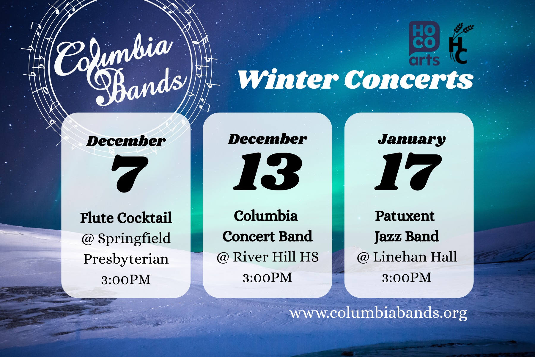Columbia Concert Band Winter Concert Dec 13 3:00 pm - 4:30 pm Columbia Concert Band Winter Concert Free
