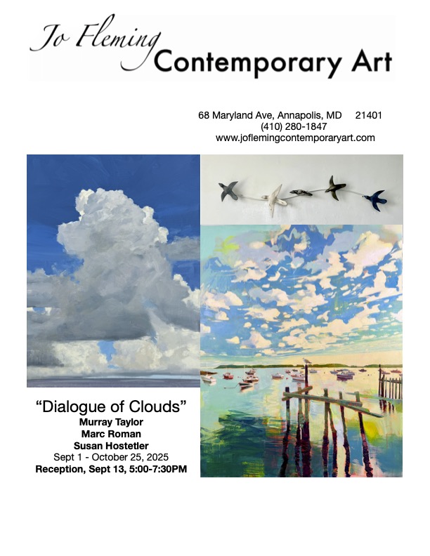 “Dialogue of Clouds” paintings by Murray Taylor and Marc Roman with sculpture by Susan Hostetler Sep 13 5:00 pm - 7:30 pm “Dialogue of Clouds” paintings by Murray Taylor and Marc Roman with sculpture by Susan Hostetler free