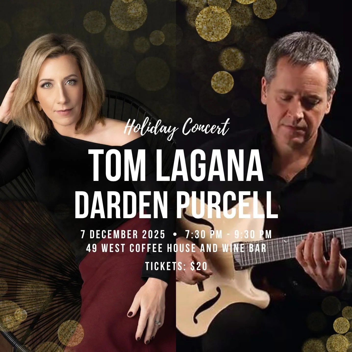 Tom Lagana & Darden Purcell Holiday Concert Dec 7 December 7 @ 7:30 pm - December 10 @ 9:30 pm Tom Lagana & Darden Purcell Holiday Concert $20