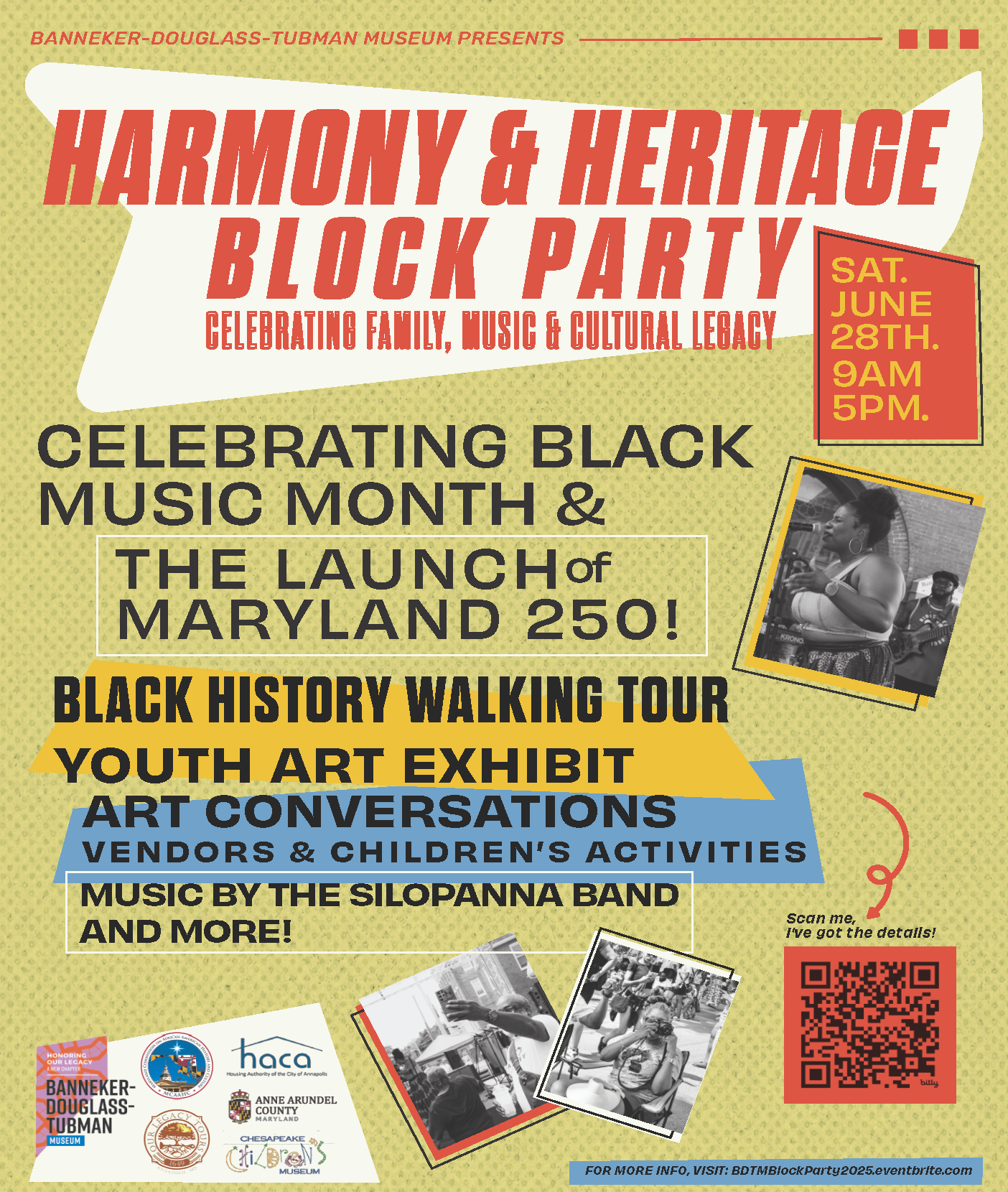 Join the Banneker-Douglass-Tubman Museum and the Maryland Commission on African American History & Culture for a day of rhythm, creativity, and community at the Harmony & Heritage Block Party: Celebrating Family, Music, and Cultural Legacy! Immerse yourself in: Music | Youth Art Exhibition | Family-Friendly Activities | Black History Walking Tour | Mindfulness & Wellness | Artist […]